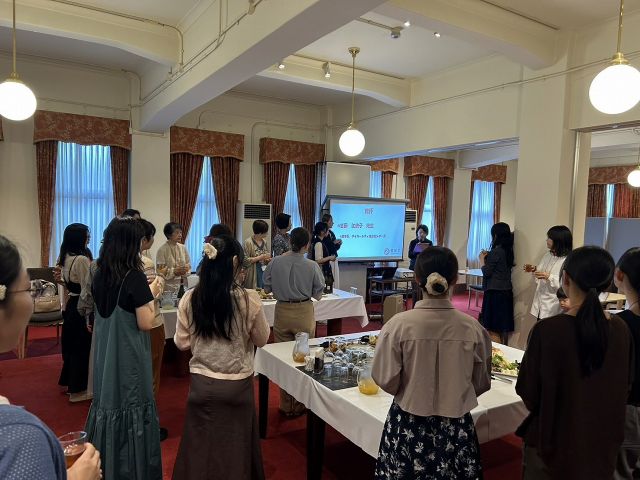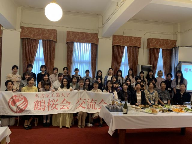 第9回 交流会〈2025年度〉 2025.10.09 2025年10月4日、「鶴桜会」第9回年次交流会を開催しました。本年も女子学生のためのテクノフェスタと合同の講演会として、トヨタ自動車株式会社の滝崎綾子さんによる講演「名工大からつながる理系女性のキャリア~巻き込み力で切り開く、私の仕事と暮らし~」の後、「カフェサラ」にて昼食交流会を開催し、OGや現役女子学生など計40名が参加しました。 講演会では、女子高校生から活発に質問が出るなど、関心の高さがうかがわれました。交流会では、吉田江依子ダイバーシティ推進センター長による乾杯のご発声の後、武藤敦子会長より総会が行われました。その後、自己紹介とグループトークを行い、参加者同士が親睦を深めました。参加者からは、「なかなか女性の卒業生に会うことがないので、素晴らしい先輩や仲間に出会えたことに感謝している」「さまざまな年代の方と楽しく交流できて有意義だった」「母校を訪れることで懐かしい気持ちになり、先輩方からエネルギーをもらえた」などの感想が寄せられました。鶴桜会交流会は「1年に1度、鶴桜会で会いましょう」を合言葉に、世代や専門分野を超えたつながりを育む場です。「名工大で学んだ女性」という共通の絆のもと、会員同士がゆるやかに連携・交流できる仕組みづくりを目指しています。今後も、毎年10月に昼食交流会の開催を予定しています。多くのOGの皆様のご参加を心よりお待ちしております。 滝崎綾子さんによる講演 吉田ダイバーシティ推進センター長による乾杯 自己紹介の様子